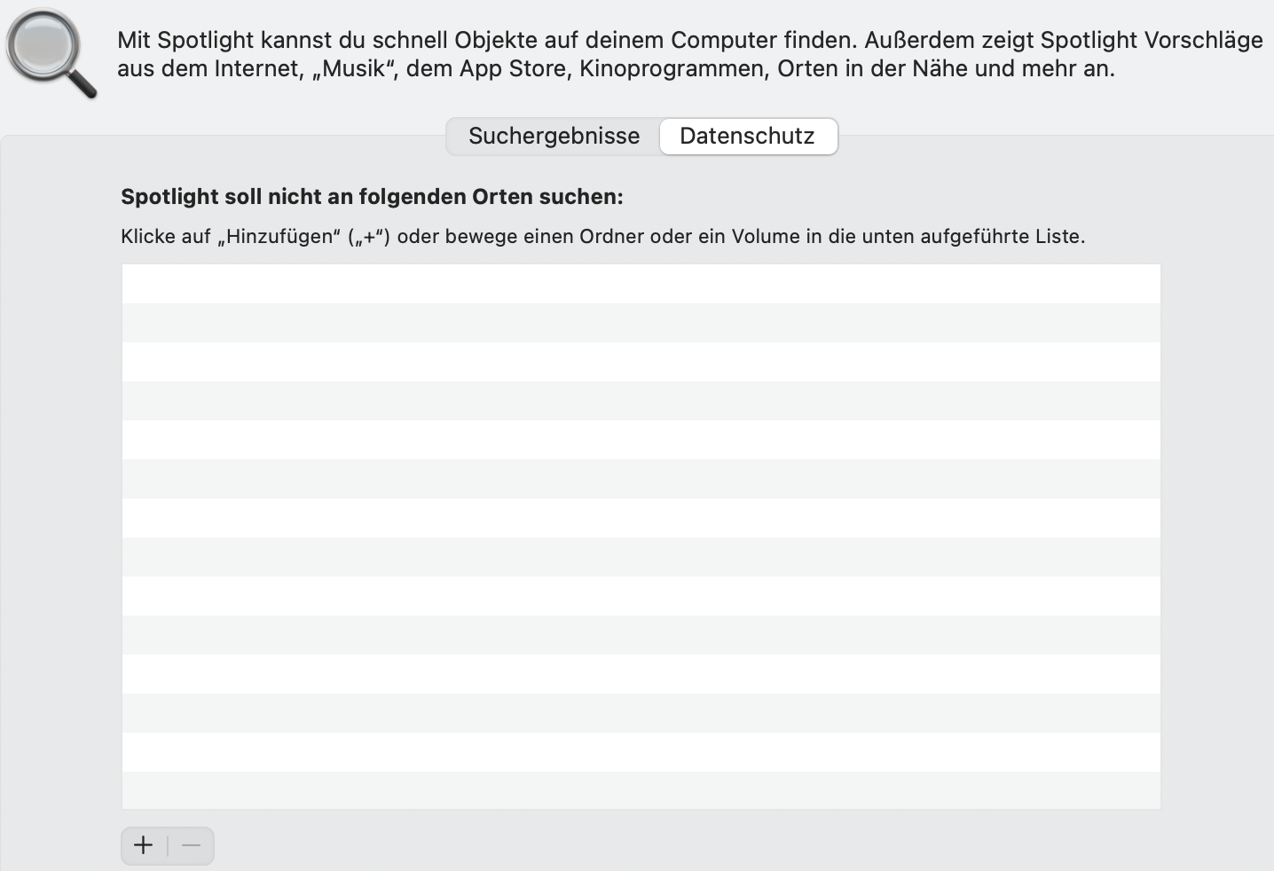 ->& this is exactly the same functionality as the one offered in the Spotlight settings of MacOS (please see in the screenshots provided) where folders can be excluded from Spotlight indexing