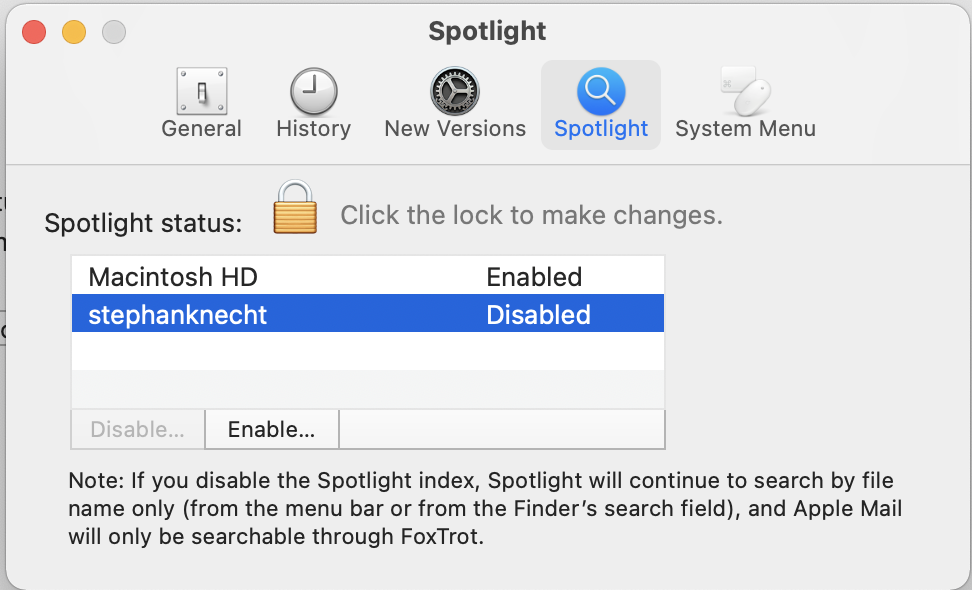 3. Is it a Foxtrot default setting that the user folder is excluded from Spotlight indexing? Does this actually mean that Spotlight e.g. does not index my mail?