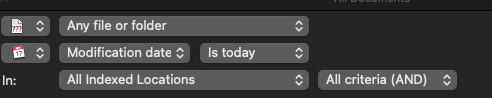 I thought you could use "Then apply filter by Spotlight attribute" > "Modified" > "=d" > [pick today's date]. <--- But it doesn't work. Also tried the Spotlight attribute "Content modified". Shouldn't this work??